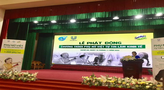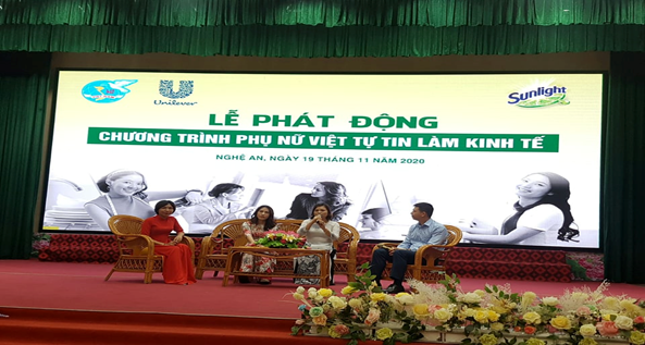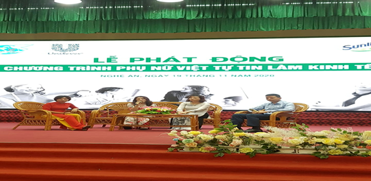 Phát biểu tại Lễ phát động đ/c Lê Thị Hương Giang - Phó Chủ tịch thay mặt cho lãnh đạo Hội LHPN tỉnh Nghệ An mong muốn thông qua hoạt động này, các cấp Hội phụ tỉnh Nghệ An với khả năng sáng tạo, sự tự tin và nỗ lực vươn lên sẽ có nhiều ý tuởng, kế hoạch, dự án làm kinh tế, khởi sự kinh doanh và sự đổi mới sáng tạo của phụ nữ được hình thành, triển khai tại các địa phương.