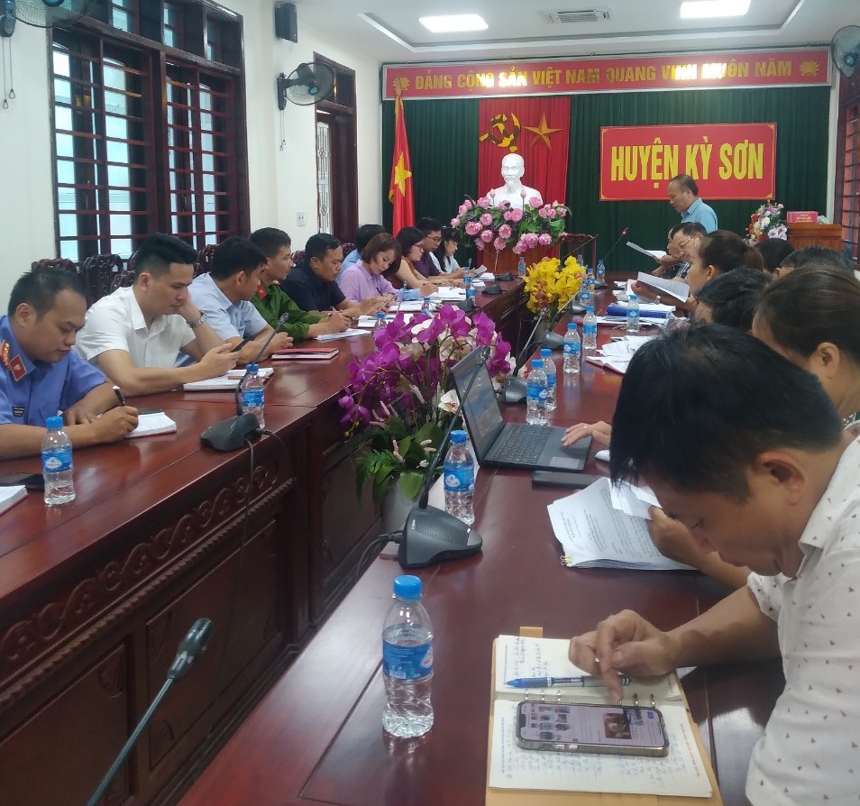 Ngày 30/6, đoàn kiểm tra tại huyện Kỳ Sơn, tham gia làm việc có đại diện các ngành: Lao động - TB và XH, Thông tin và Truyền thông, Tổ chuyên viên giúp việc Ban Vì sự tiến bộ phụ nữ tỉnh, Tổ giúp việc Ban điều hành công tác trẻ em tỉnh và Lãnh đạo UBND, các phòng chuyên môn, cơ quan đơn vị UBND huyện Kỳ Sơn.