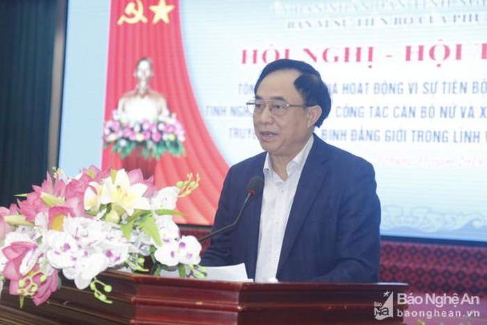 Đồng chí Lê Đình Lý - Giám đốc Sở Nội vụ phát biểu tại hội nghị mong muốn công tác bình đẳng giới tiếp tục được đẩy mạnh ở mọi cấp ngành, địa phương. Ảnh: Thanh Nga