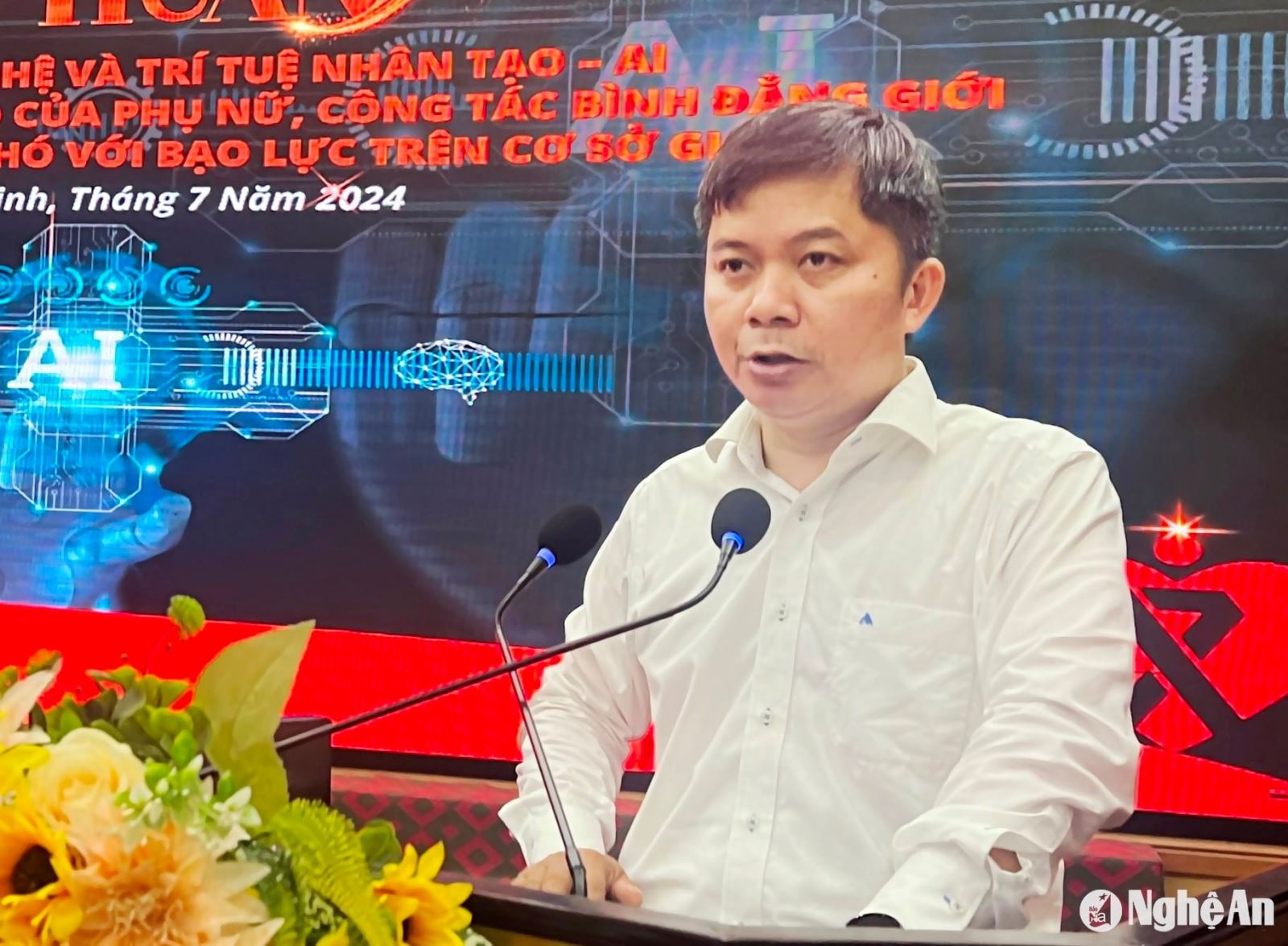Tham dự khai mạc các lớp tập huấn có đồng chí Nguyễn Văn Nam – Phó Giám đốc Sở Lao động – TB&XH. Phát biểu khai mạc, đ/c Nguyễn Văn Nam nhấn mạnh: Thời gian qua, tỉnh ta đã thu được nhiều kết quả đáng khích lệ, góp phần thu hẹp khoảng cách giới trong các lĩnh vực, đóng góp tích cực vào quá trình phát triển kinh tế - xã hội của đất nước. Các hoạt động về BĐG được tỉnh thực hiện khá toàn diện trong mọi mặt của đời sống, được các cấp, các ngành ghi nhận và đánh giá cao. Cuộc Cách mạng công nghiệp lần thứ tư, nhất là công nghệ số phát triển mạnh mẽ, tạo đột phá trên nhiều lĩnh vực, tạo ra cả thời cơ và thách thức đối với mọi quốc gia, dân tộc. Trong đó trí tuệ nhân tạo (AI) được xem là một trong những công nghệ cốt lõi của cuộc Cách mạng công nghiệp 4.0. Ở nước ta, một số sản phẩm của AI được phát triển trong thời gian gần đây đã mang đến nhiều thách thức và cũng không ít đóng góp tích cực cho kinh tế-xã hội, đời sống. Đối với lĩnh vực hoạt động VSTBPN, công tác bình đẳng giới, AI có khả năng đo lường ảnh hưởng của truyền thông tới nhận thức của người dân về bình đẳng giới. Đồng thời AI cũng là một công cụ đắc lực trong việc nghiên cứu bối cảnh, xây dựng chiến lược, đánh giá tác động truyền thông về bình đẳng giới.