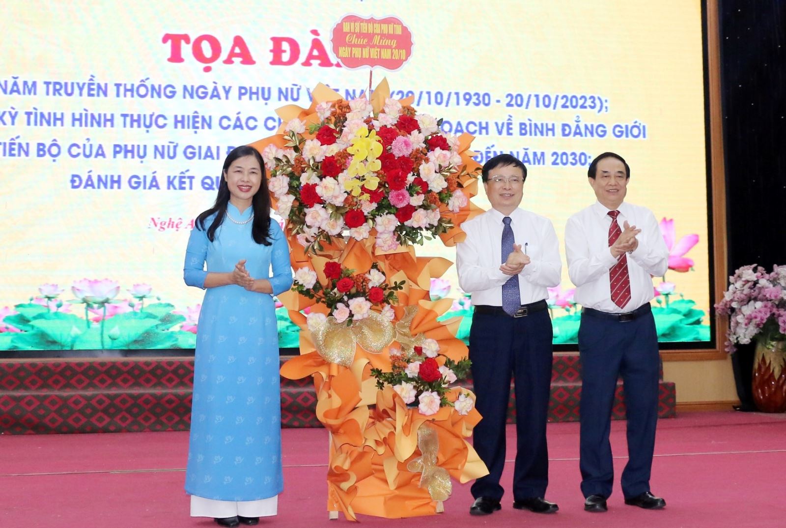 Nhân kỷ niệm 93 năm truyền thống ngày Phụ nữ Việt Nam (20/10/1930-20/10/2023), đồng chí Phó Chủ tịch UBND tỉnh đã có lẵng hoa tươi thắm chúc mừng và mong đội ngũ nữ cán bộ chủ chốt, cán bộ lãnh đạo, quản lý của tỉnh và phụ nữ tỉnh nhà tiếp tục khẳng định vai trò, vị thế của mình đối với sự phát triển của gia đình, cộng đồng và xã hội./.