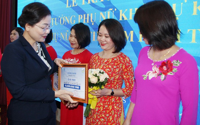 Bà Trần Thị Hương, Phó Chủ tịch Hội LHPN Việt Nam, chúc mừng các cá nhân đạt giải.