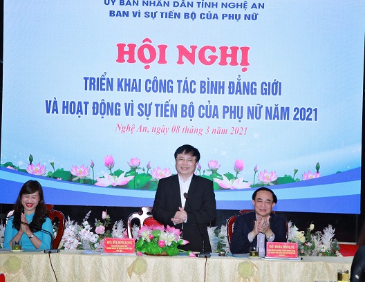 Đề ra phương hướng, nhiệm vụ trong năm 2021, Phó Chủ tịch UBND tỉnh Bùi Đình Long đồng tình với kế hoạch mà Ban Vì sự tiến bộ phụ nữ tỉnh đã đặt ra, đặc biệt là việc xây dựng kế hoạch, tổ chức triển khai thực hiện Chiến lược Quốc gia về bình đẳng giới giai đoạn 2021 – 2030 và các chương trình, đề án liên quan tới bình đẳng giới và phòng ngừa, ứng phó với bạo lực trên cơ sở giới giai đoạn 2021 – 2025.